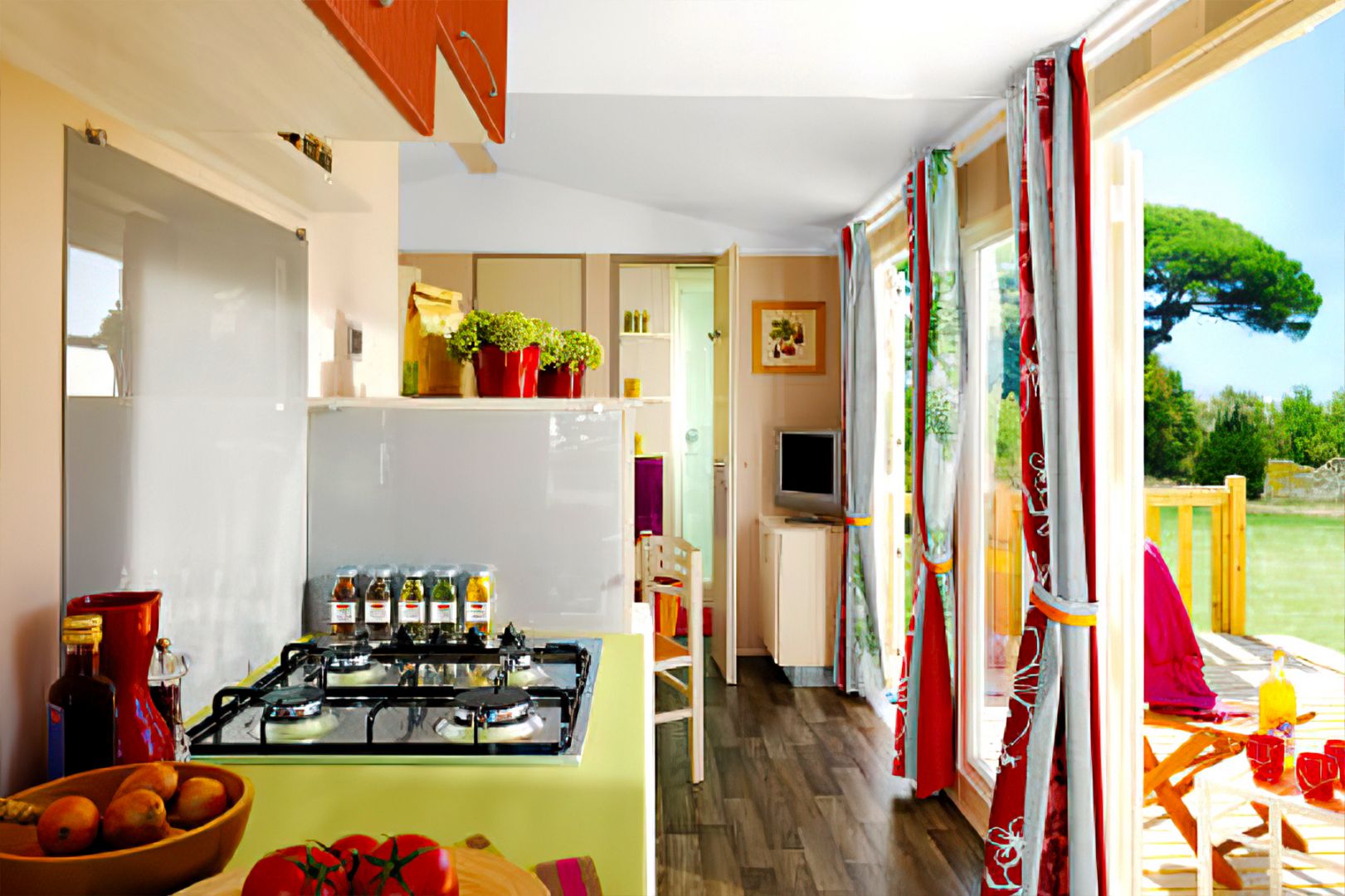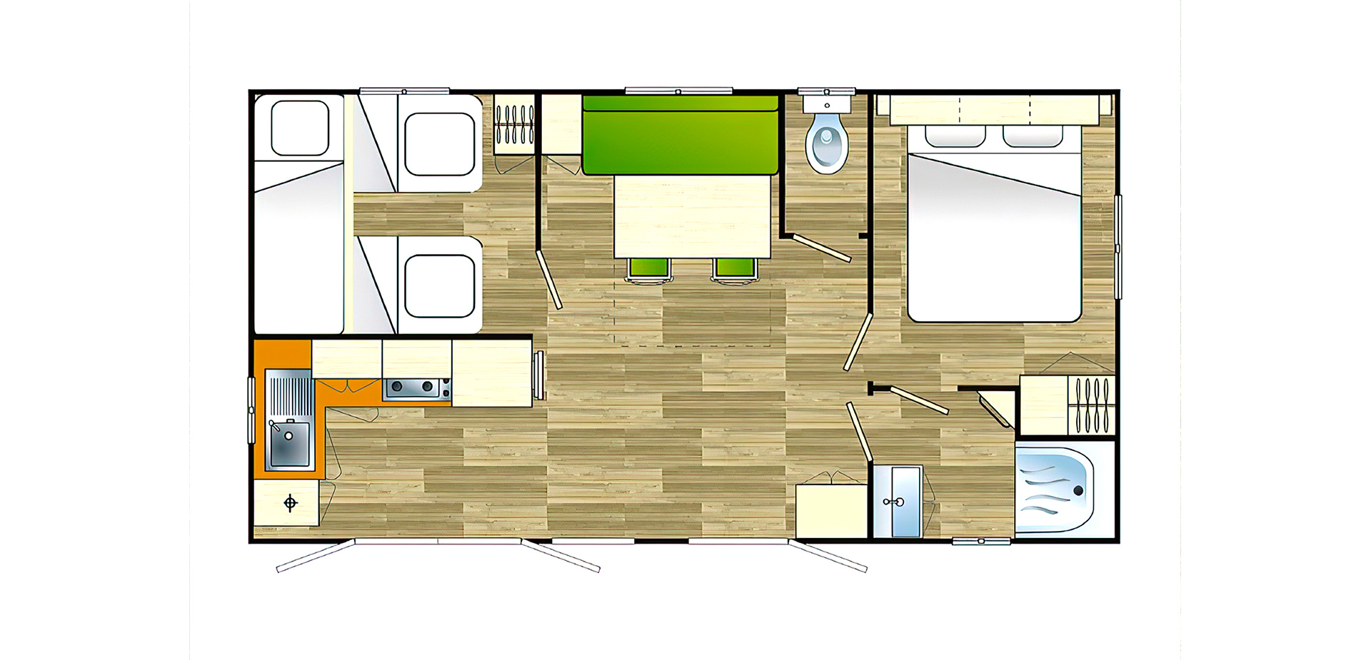 The large two-bedroom model with summer kitchen open on the outside and its vast master suite.