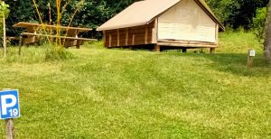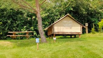 Découvrez la « Cabadienne », une petite tente-cabanon de 6m2 vous permettant d’y mettre votre matelas. Ce petit hébergement en bois peut accueillir jusqu’à 4 personnes.